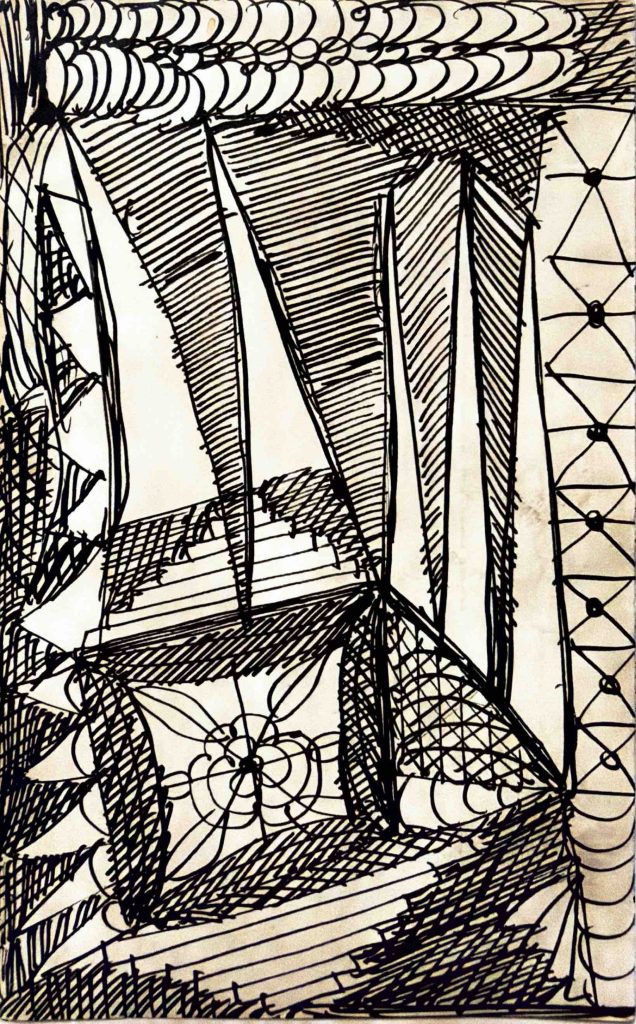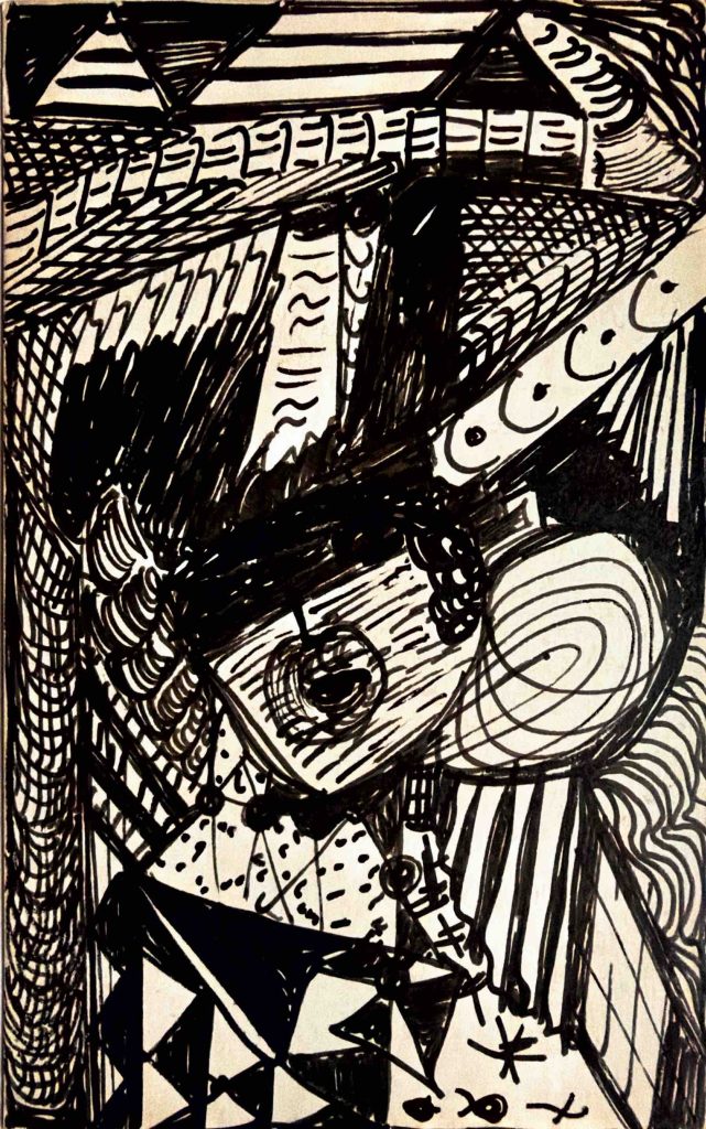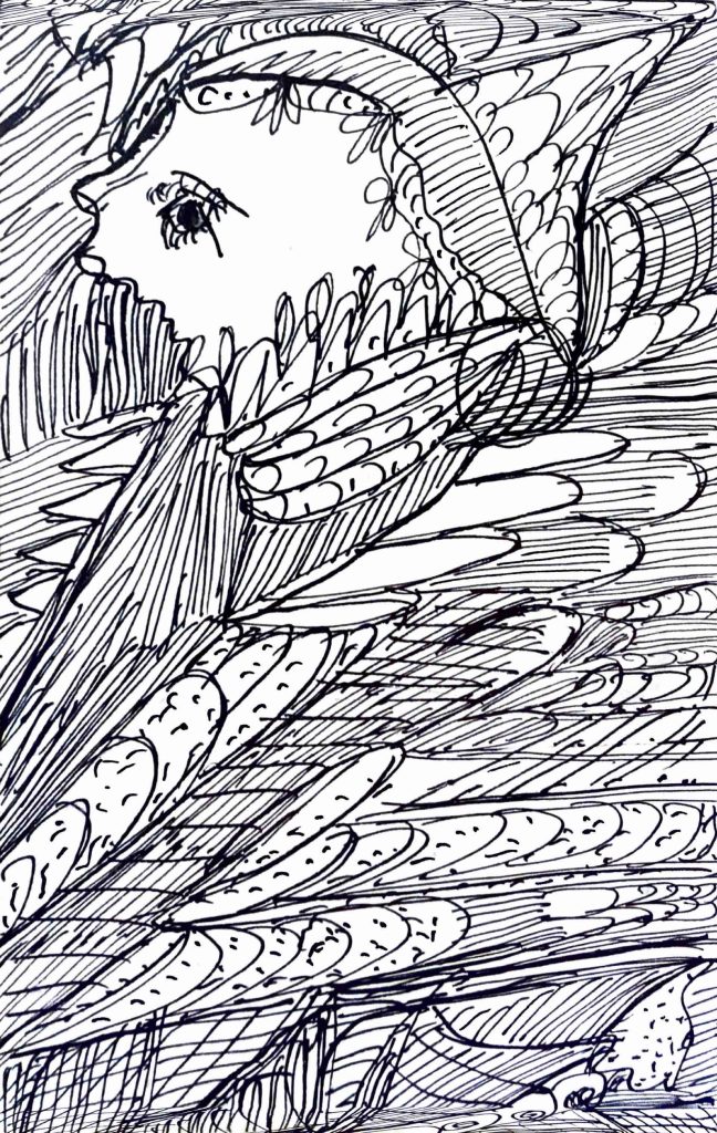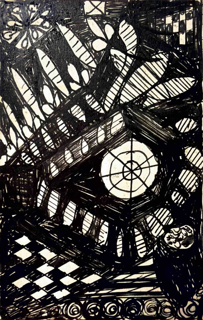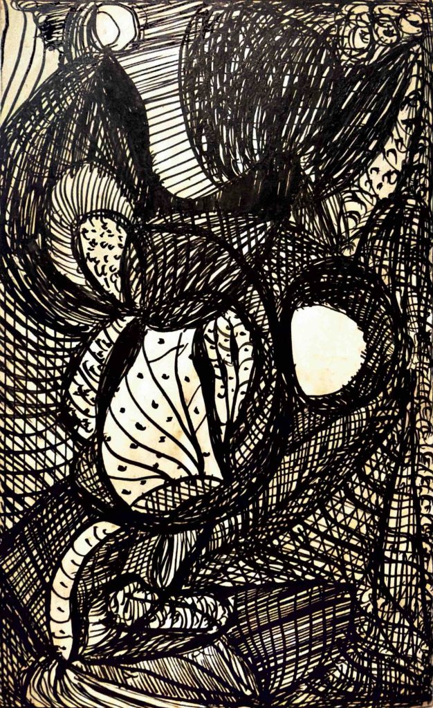 in 1920, at the age of 38, following the death of two of her children and a long illness, guided by a spirit she called “Myrninerest” (my inner rest) she sat at her kitchen table and produced many thousands of visionary drawings. As American scholar Daniel Wojcik noted, “like other Spiritualists, Gill did not attribute her art to her own abilities, but considered herself to be a physical vessel through which the spirit world could be expressed.”