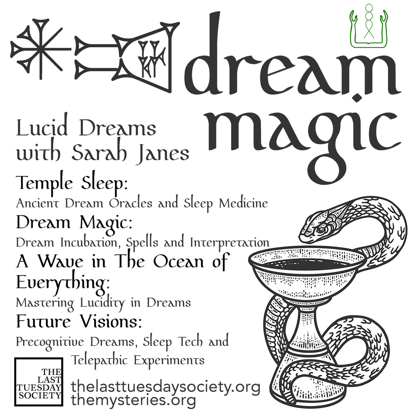 Sarah’s first book Initiation into Dream Mysteries, Drinking from the Pool of Mnemosyne is out later this year with US publisher Inner Traditions/Bear & Co. This book explores the ancient history and philosophy of dream therapy and sleep medicine, beginning in deepest antiquity through to ancient Mesopotamia, Egypt and Greece. It also has seven stories in it which are inspired by her own dream incubation practices. These stories are designed to act as psychomagic narratives to influence your dreams and take you on a self-initiatory conscious dream quest.