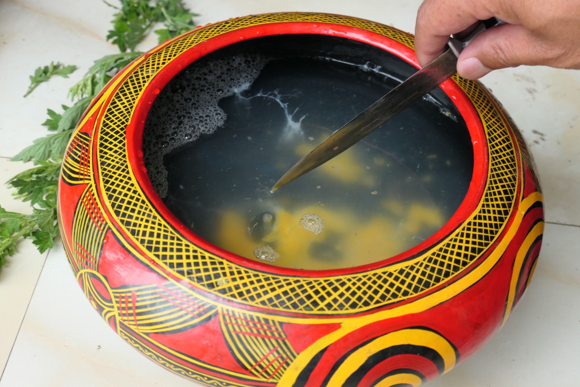Image: Pointing at a bubble trapped just beneath the surface to indicate the client’s lost soul. Photograph © Katherine Swancutt