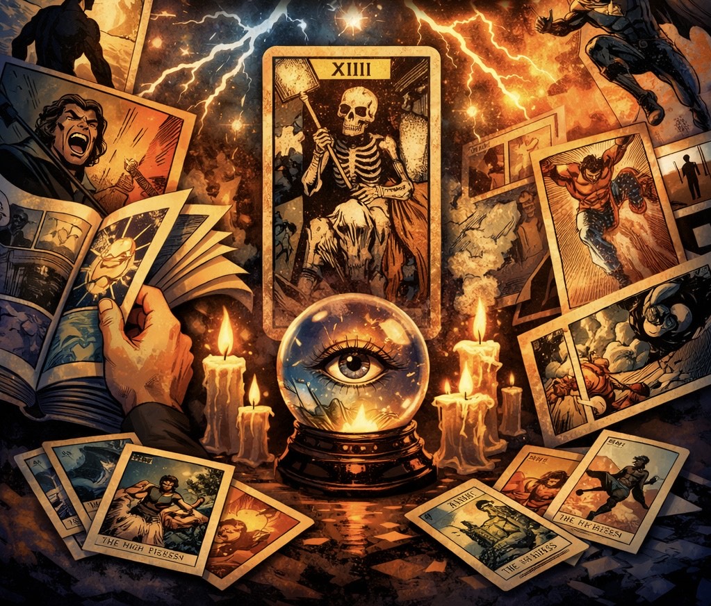 There is a unique relationship between comic books and Tarot, as they both embody sequential storytelling using symbolic art and natural language.